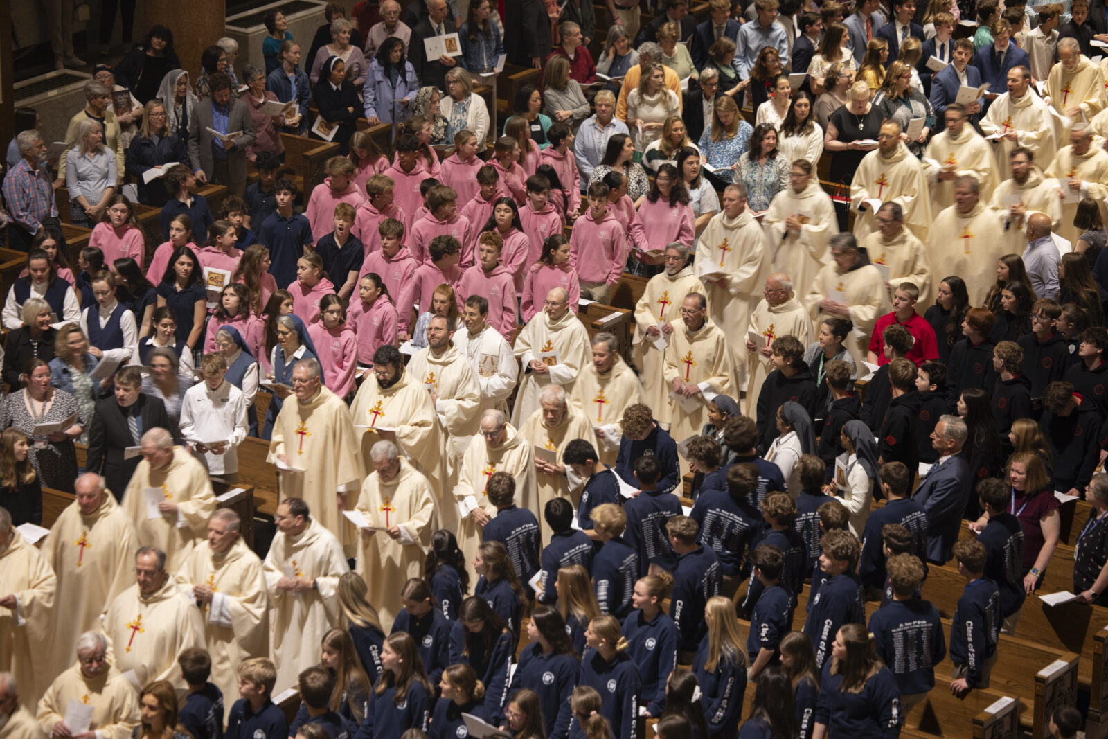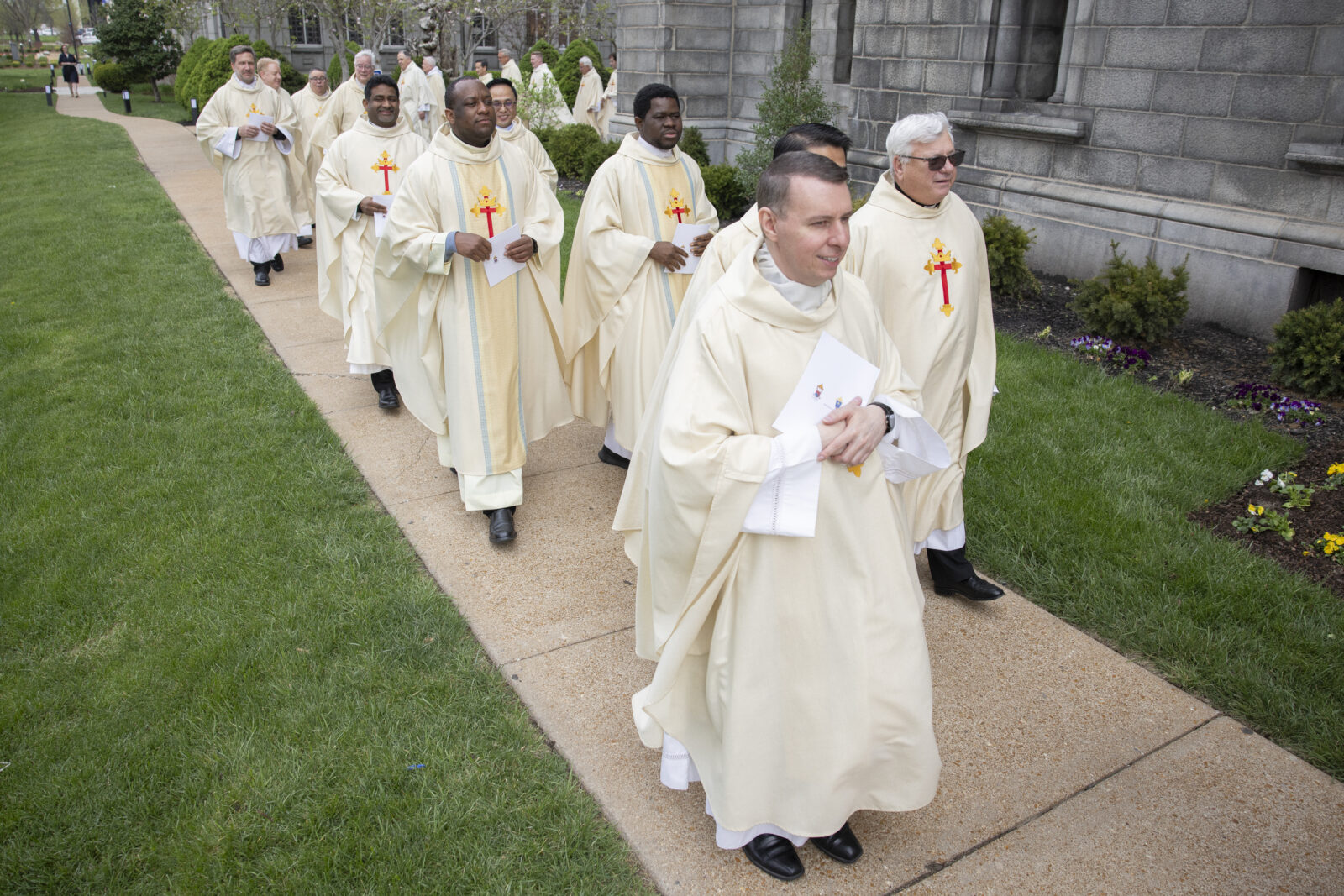 Archbishop Mitchell T. Rozanski celebrated the annual Chrism Mass April 2 at the Cathedral Basilica of Saint Louis. Hundreds of priests of the archdiocese attended the Mass, which included a renewal of their priestly promises.