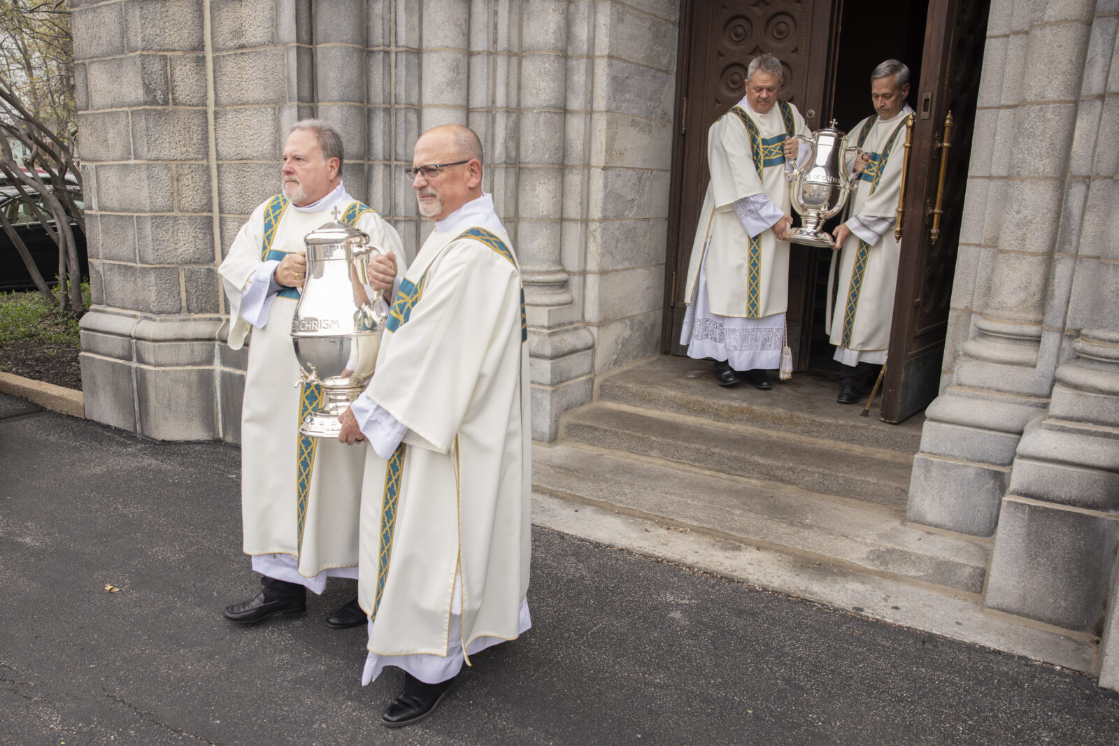 During the Mass, Archbishop Rozanski blessed the three holy oils that will be used in archdiocesan parishes throughout the year: the oil of the sick, the oil of catechumens, and the sacred chrism.
