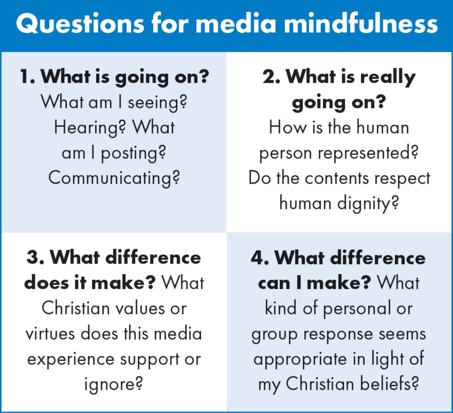 She suggested that families ask “media mindfulness” questions to develop a habit of thinking critically about the messages found in media. Rather than passively absorbing content, families can critically think about how the messages measure against the Gospel and recognize what is true, good and beautiful — and what is not, she said.