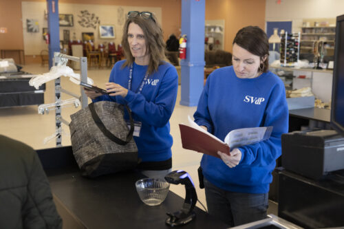 The society’s thrift stores benefit neighbors in need in a couple ways: first, through vouchers, distributed on home visits by parish Vincentians, that allow recipients to shop the stores for a new bed and donated items like clothing and furniture. Proceeds from the store (after operating costs) also go toward the society’s programs in the archdiocese.