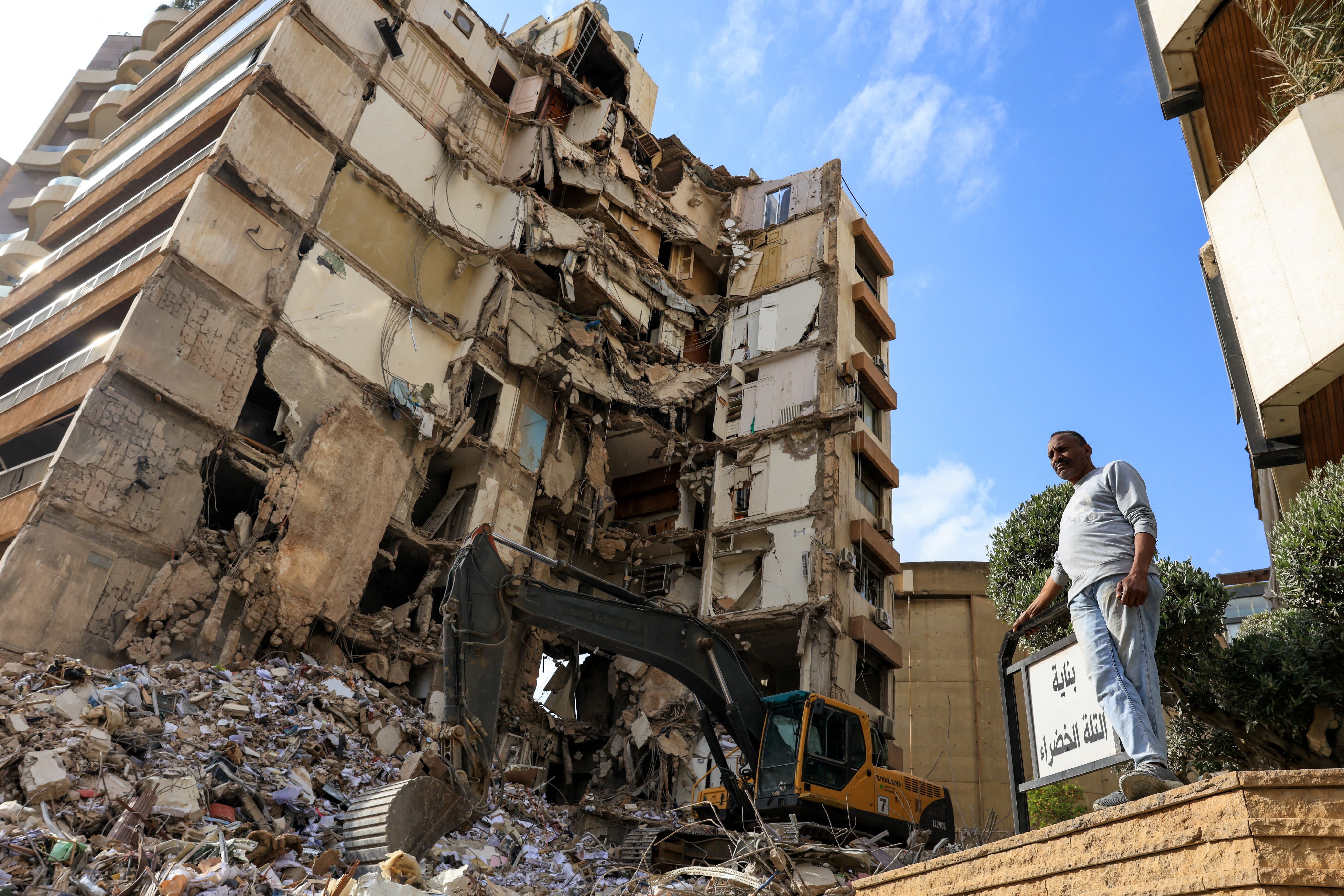 A man stands near a damaged building in Beirut, Lebanon, April 9, 2026, following an Israeli strike carried out the previous day. Bishop A. Elias Zaidan, chair of the U.S. Conference of Catholic Bishops’ Committee on International Justice and Peace, is calling on the Trump administration to boost humanitarian support for Lebanon and strengthen efforts to achieve peace there.