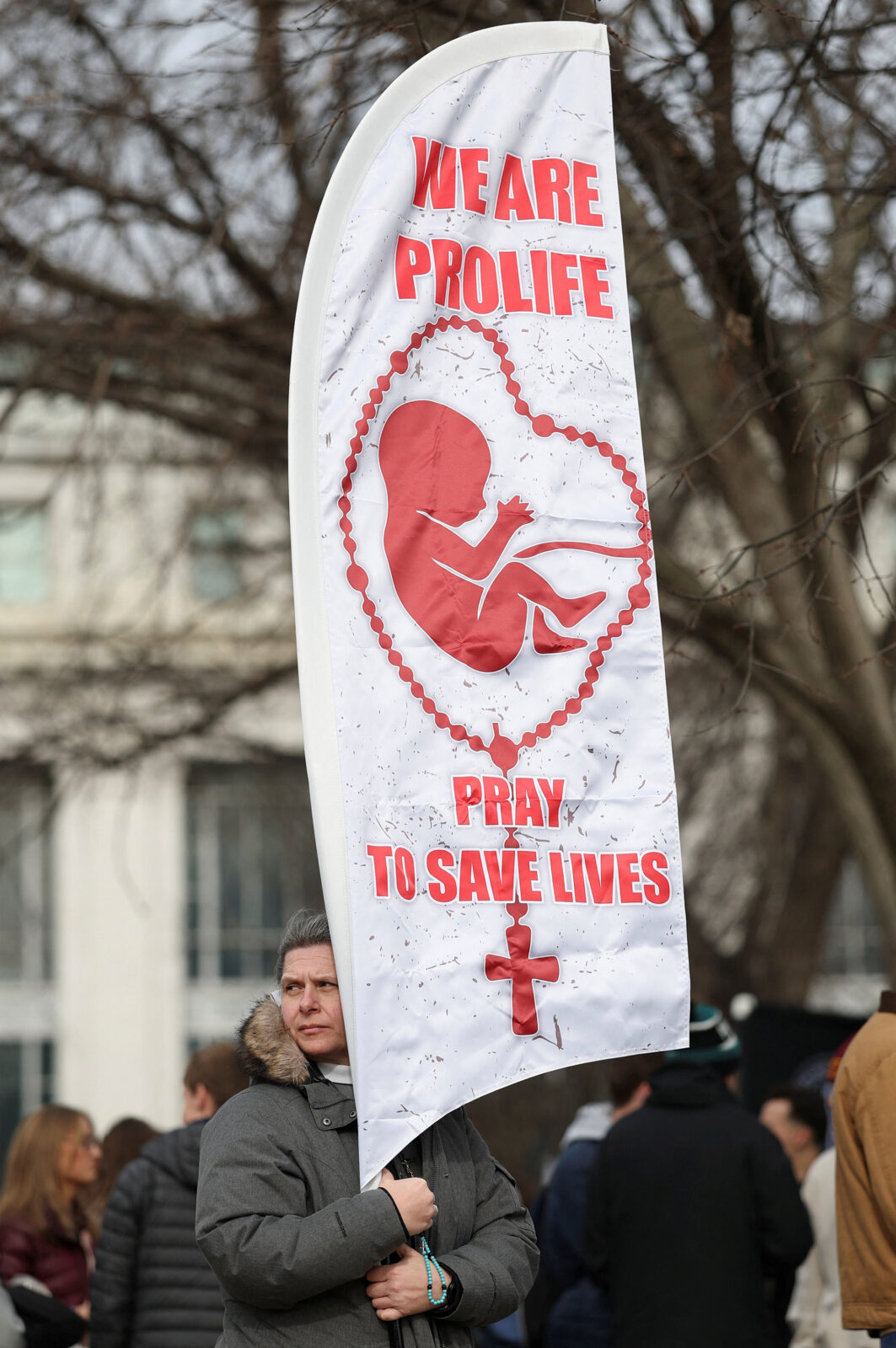 A pro-life advocate held a banner during the 53rd annual March for Life rally in Washington Jan. 23.