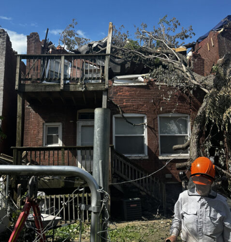 Kim’s home in the Academy neighborhood of north St. Louis was among the thousands of structures damaged by a tornado in May of 2025. A large tree sliced through the back of her two-story brick home, destroying an exterior wall and causing roof and interior damage, mostly along the back side.