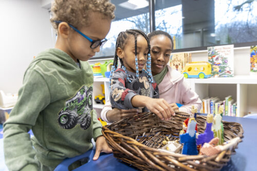 Hazel and Zero played happily in the playroom with 3-year-old Zayla Williams, preparing a feast in the play kitchen. Zayla and her mother, Cardia Lapoole, moved into Room at the Inn in November. Lapoole had lost her job, then fell behind on rent for her apartment in Maplewood and couldn’t catch up.
