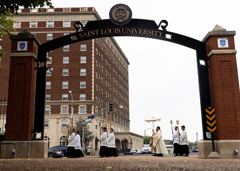 Pilgrims from across the archdiocese joined Welte to walk with the Lord from the College Church to the Cathedral Basilica of Saint Louis.
